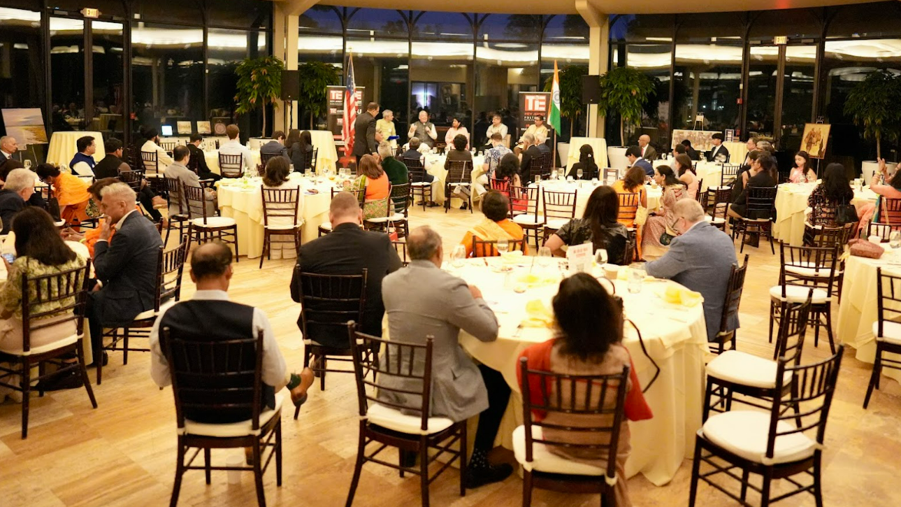 The program opened with the national anthems of India and the United States, followed by the launch of the International Enterprise Fellowship, a three-semester initiative for high school students developed in collaboration with Enspire Academy, Cedar Hill Prep School, and TiE-NJ. The evening also featured an art exhibition curated by Anu Bhat and a poster session by students from the TiE NextGen program.