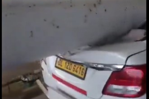 A portion of the roof landeed on a car parked at the terminal. / Screengrab of the video posted by the Indian National Congress.