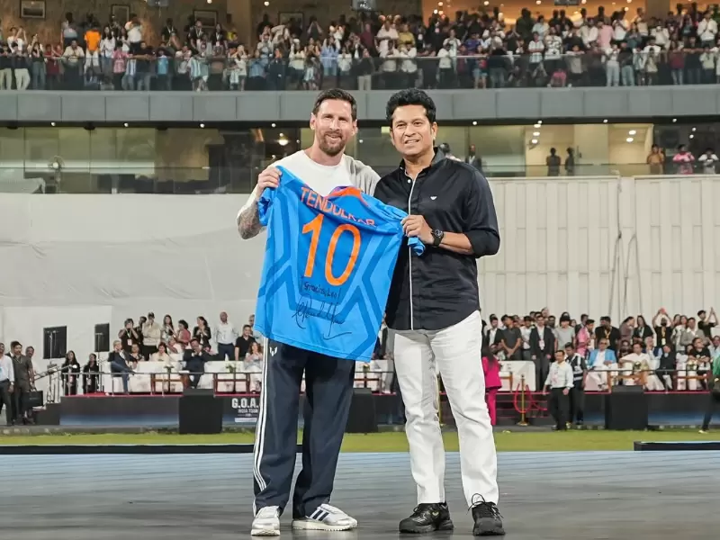Cricket legend Tendulkar presented Messi with his iconic number 10 jersey from India's 2011 World Cup triumph at the same venue.