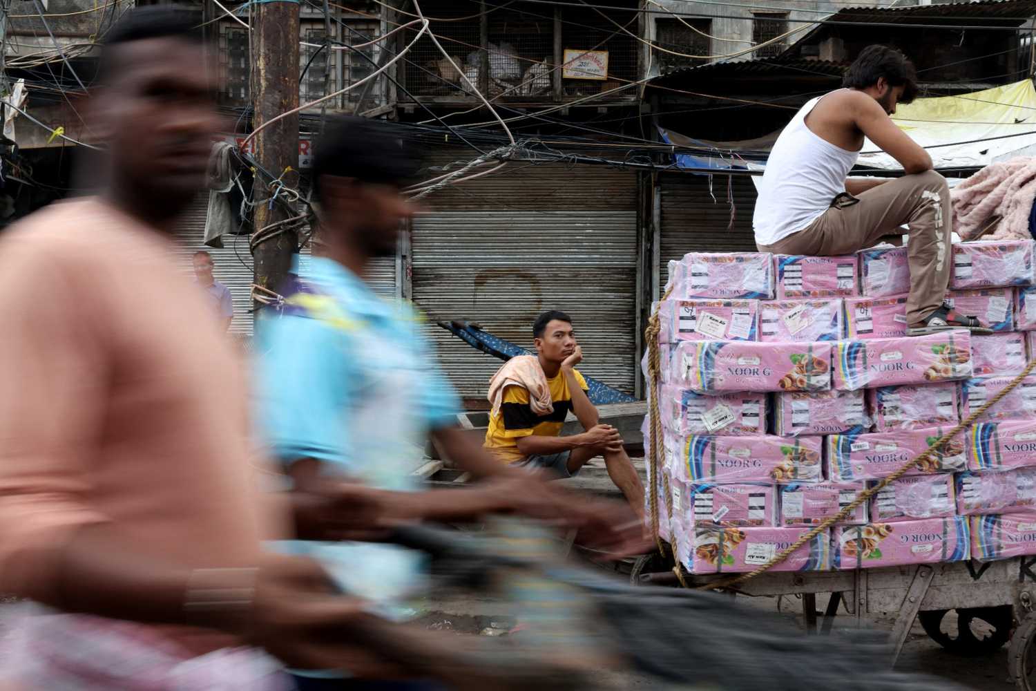 FILE PHOTO: Labourers rest on handcarts in a wholesale market in the old quarters of Delhi, India, August 29, 2025. / REUTERS/Bhawika Chhabra/File Photo