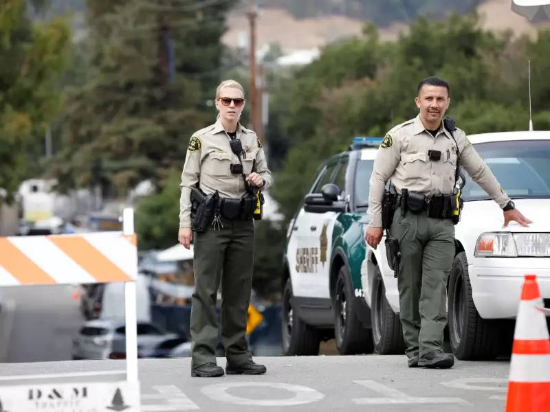 A police officer stands in front of the wreckage of an Air India aircraft, bound for London's Gatwick Airport, which crashed and landed on a hostel building minutes after take-off from an airport in Ahmedabad, India June 12, 2025. / REUTERS/Adnan Abidi/File Photo