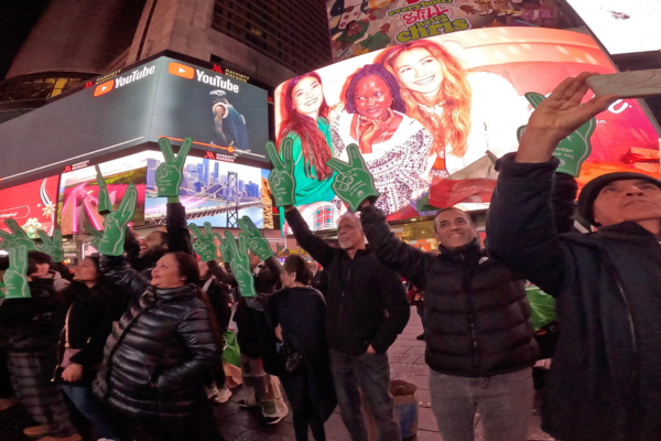 The campaign unfolded at prominent locations, including Chelsea Market, the Meatpacking District, Little Island, and Times Square. Advocates dressed as farm animals distributed green foam hands as symbols of peace and vegetarian advocacy.