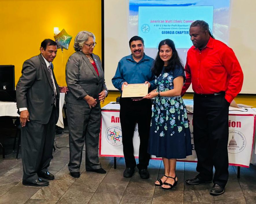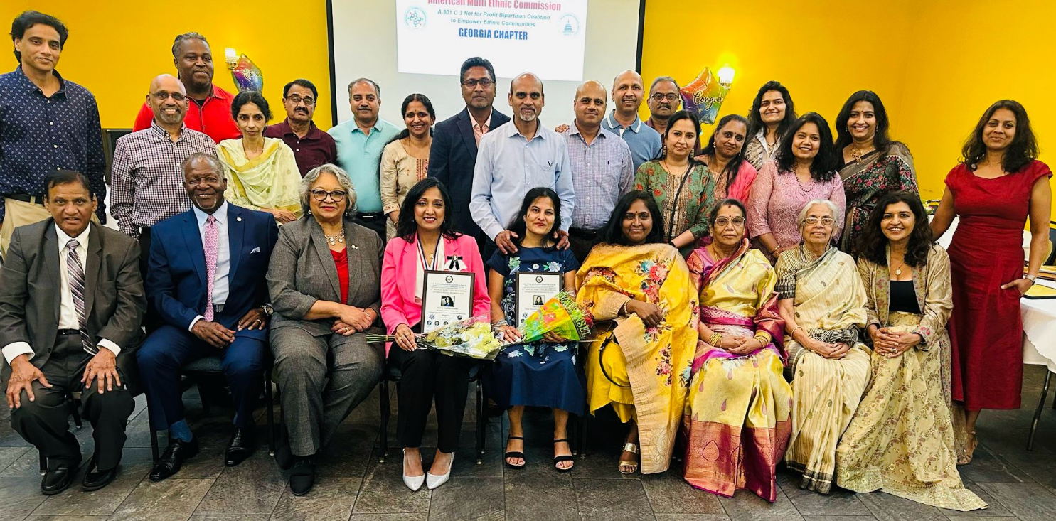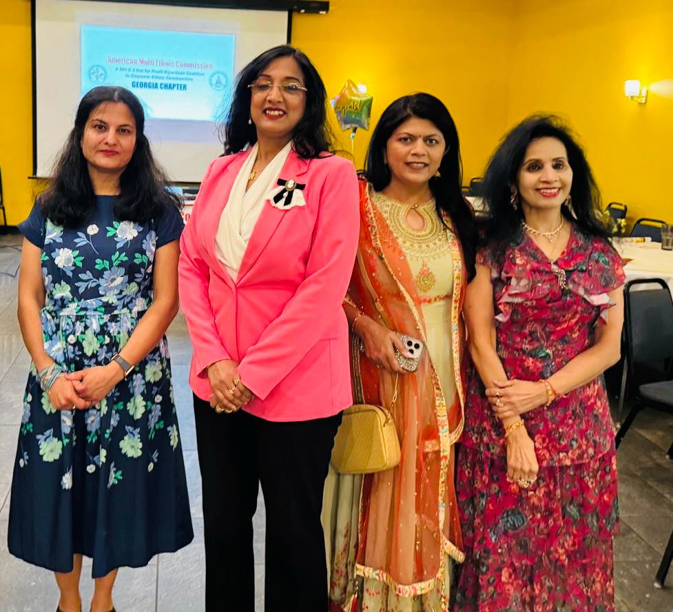 Indian American community in Atlanta gathered to celebrate the achievements of Rekha Radhakrishnan and Vani Ghanate, who recently received the Top 20 Global Women of Excellence Award 2025 by the American Multi Ethnic Commission (AMEC).