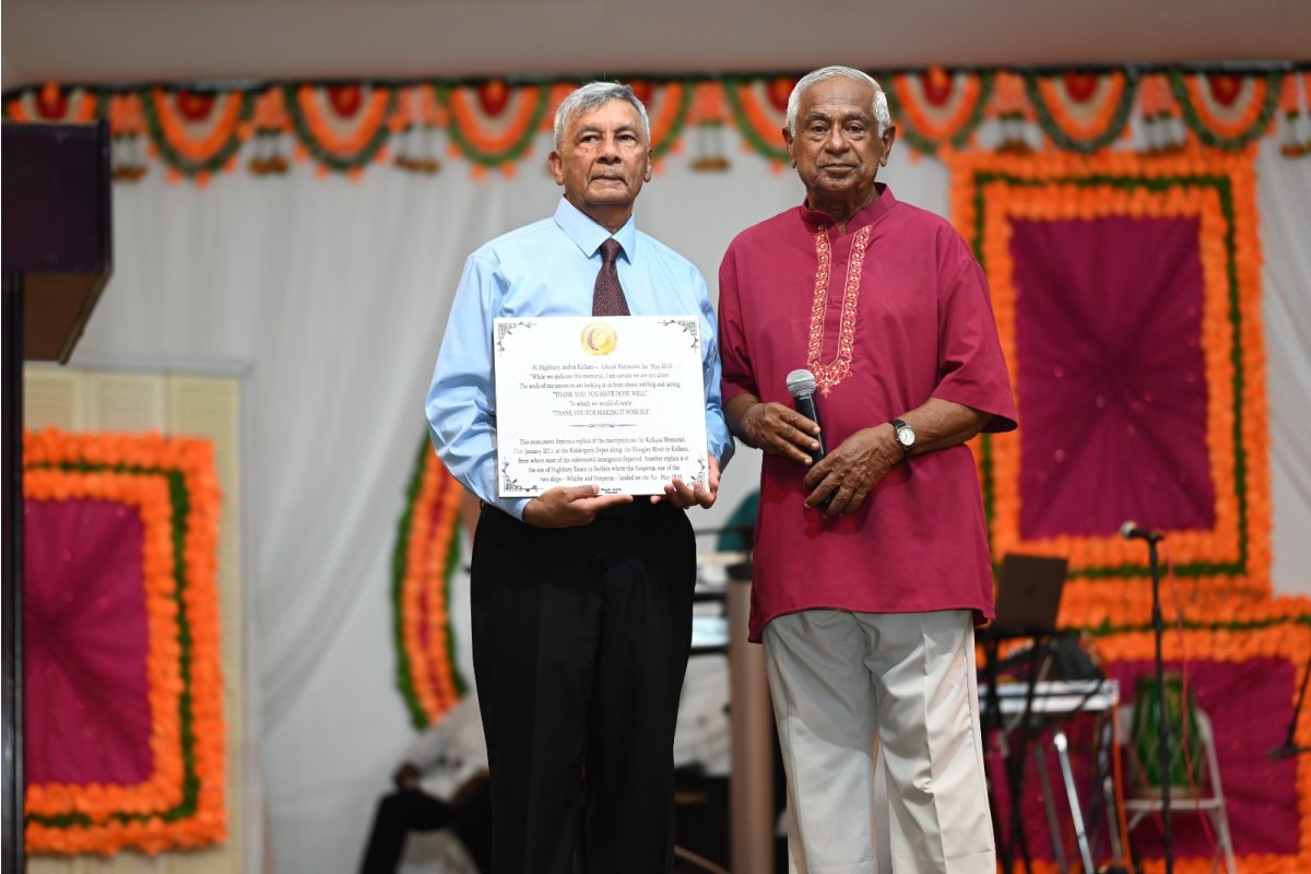 The Indian Commemoration Trust presented a plaque to Ashook Ramsaran. / Courtesy Photo