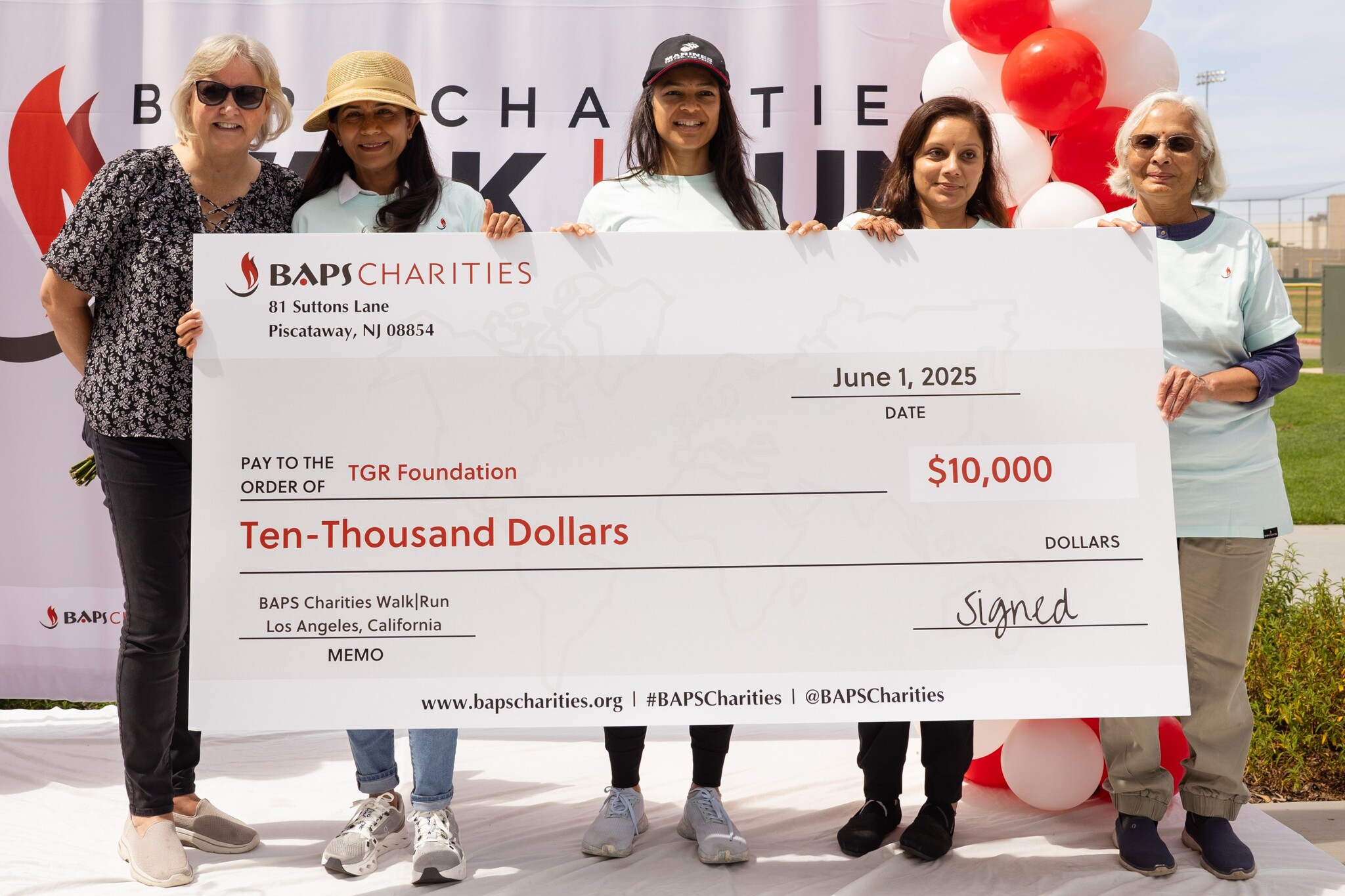 A $10,000 donation from BAPS Charities Walk in Los Angeles supports the TGR Foundation’s mission to empower youth through education and career readiness programs. / Courtesy Photo- Lenin Joshi/ BAPS CharitiesLocal leaders and civic officials participated in several locations. In Sugar Land, Texas, Mayor Joe Zimmerman acknowledged the community’s involvement, stating, “Your community makes a real difference in Sugar Land. What you do matters.”