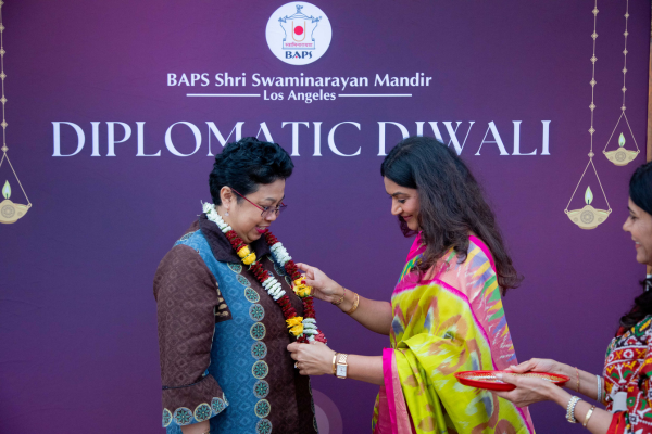 To celebrate the festival of Diwali and foster international relations, the BAPS Shri Swaminarayan Mandir in Los Angeles, CA (Chino Hills) hosted a first-ever Diplomatic Diwali.