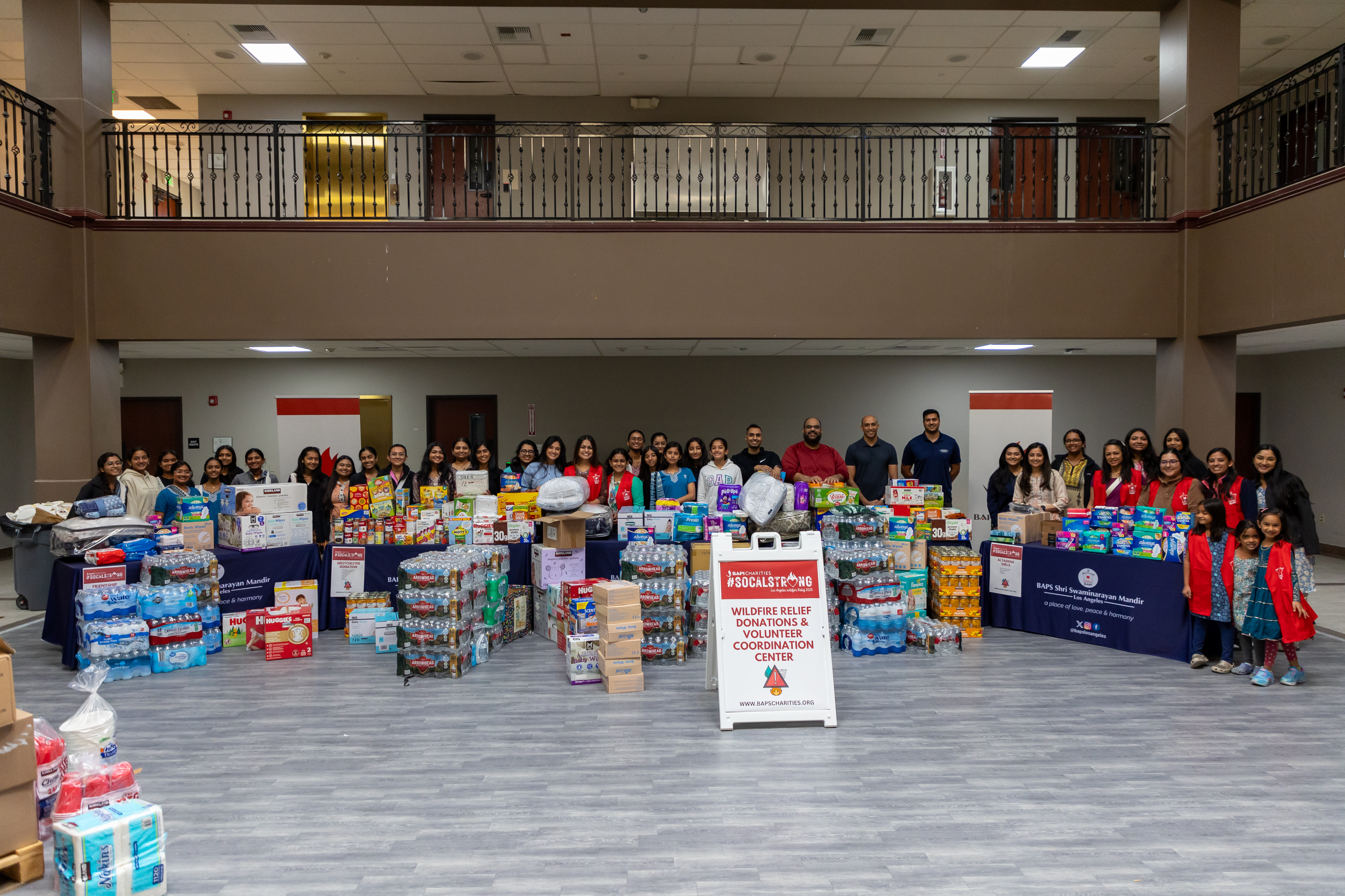 Since the fires began, BAPS Charities has donated a variety of essential items, including baby essentials, hygiene products, first aid kits, blankets, and non-perishable food items, to 15 shelters and resource centers throughout Los Angeles, Pasadena, and Altadena