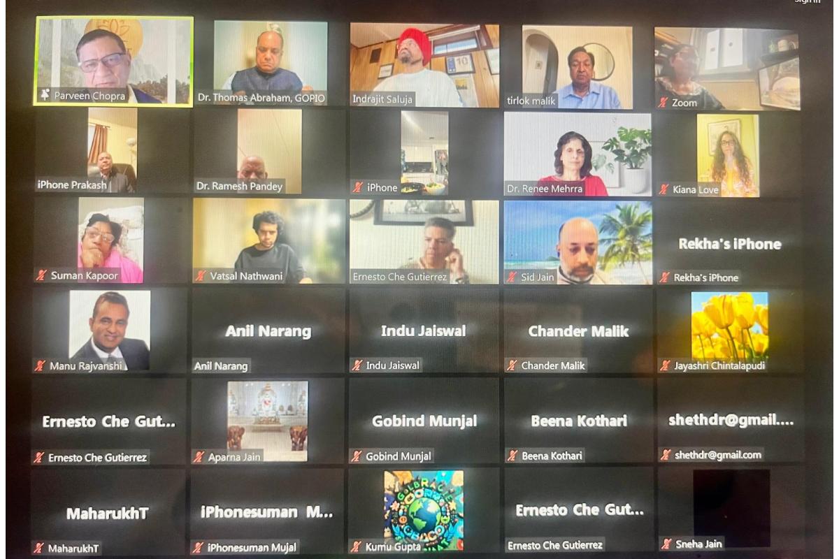 Participants including Global Peace Secretariat Founder and Social Activist Kumu Gupta, AIA National President Gobind Munjal, GOPIO Woman’s Council Co-Chair Jayashri Chintalapudi and GOPIO Life Member and community leader from New Zealand Suman Kapoor, attended the Zoom session.