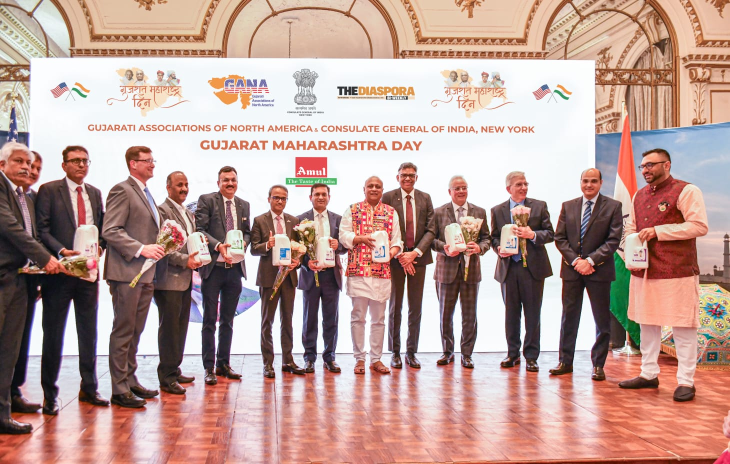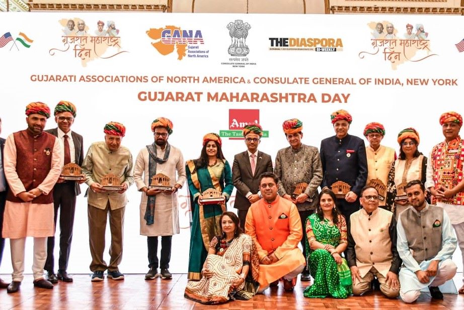 The Gujarati Associations of North America hosted Gujarat Maharashtra Day celebration at the Consulate General of India in New York in partnership with the Federation of Indian Associations FIA-NY-NY-CT-NE, the Gujarati Literary Academy of North America (GLA), and the Albany Dhol Tasha Pathak on May 1.