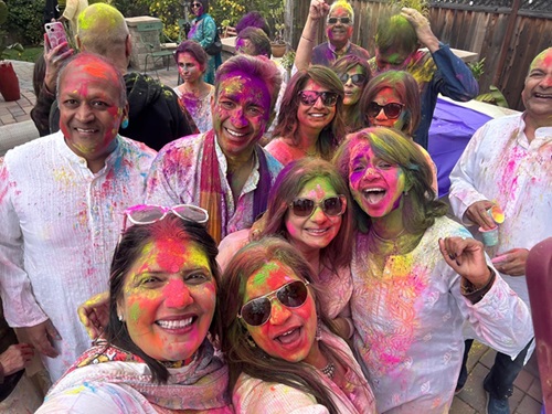 Tabassum is in an inter-faith marriage. Her spouse Avi and she host a Holi celebration for their friends in the Bay Area. Holi is fun only when a group gets together in abandoned merriment.