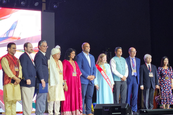 Indian Rajyasabha MP Rajendra Gehlot of the upper parliamentary house of India, wished best wishes to Arun Verma, Shri Sitaram Foundation for its many years of activities of charity and promoting universal brotherhood through festivals like the International Dussehra Diwali festival. Also, specially thanked and congratulated Mundra for Santani activities like 90 feet Hanuman Statue of Union Rathyatra,  Priest Mandirs Organizations honoring & for creating global synergy for India's rooted positive cultural activities globally including East Asia, South Asia, Africa, Gulf, UK-Europe, and North America.