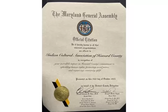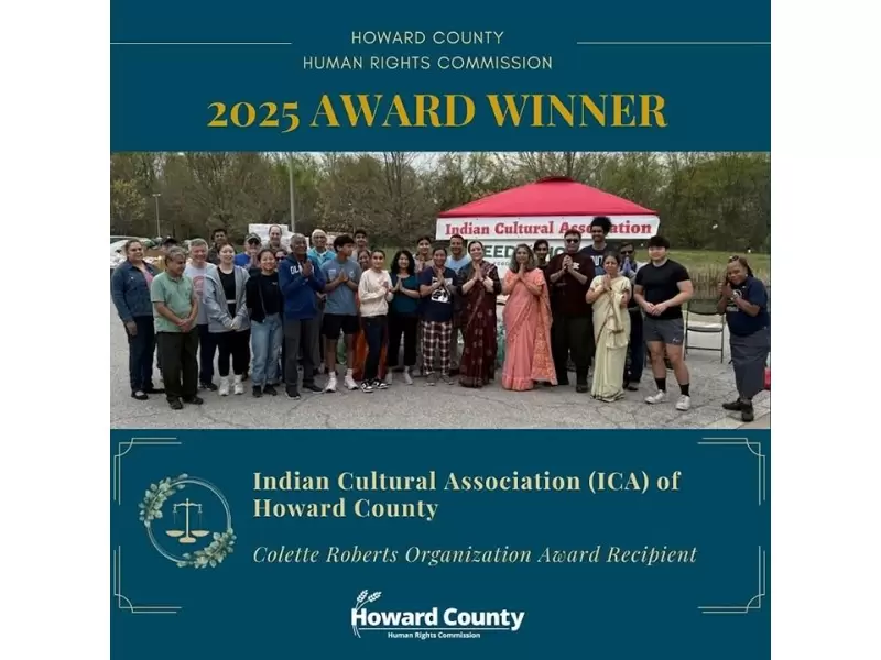 The Indian Cultural Association (ICA) received the 2025 Human Rights Award from the Howard County Human Rights Commission and the Office of Human Rights & Equity.