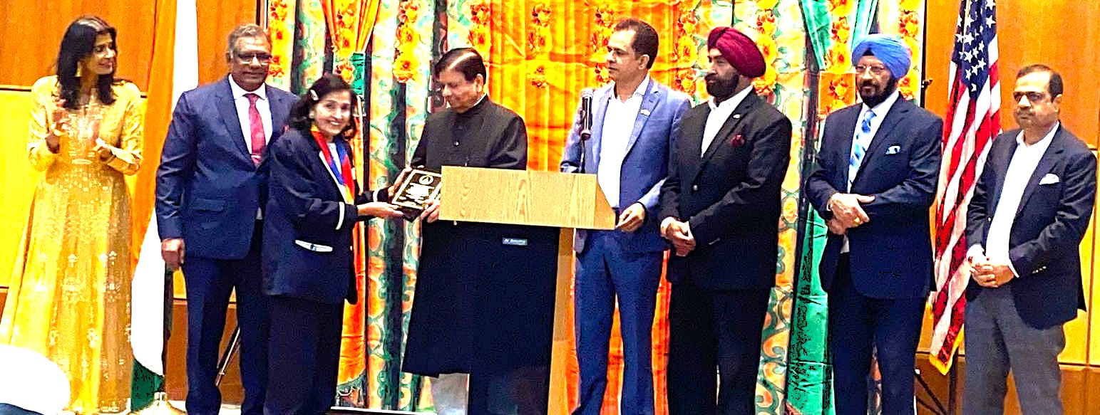 Three community members—Nagendra Madhavaram, Zafar Iqbal, and Mayur Modi were honored with awards for their dedicated service, highlighting their role in shaping and supporting the Indian American community during the event.
