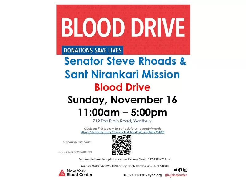 The Sant Nirankari Mission (SNM) New York chapter has announced its annual blood drive, inviting media and community representatives to cover the event on Nov. 16 at the Sant Nirankari Oneness Centre in Westbury, New York.