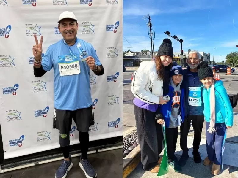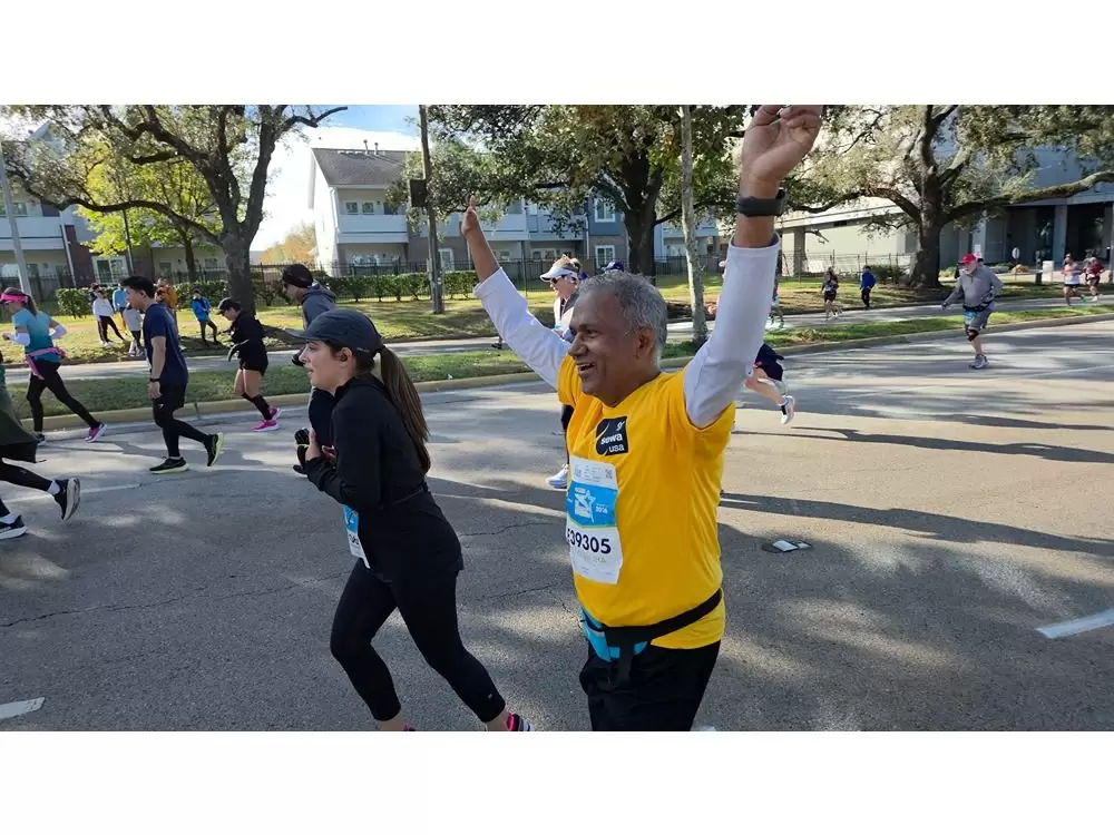Sewa International volunteers and community members at the Chevron & Aramco Houston Marathon / Courtesy: Sewa InternationalA physician, Suneja completed his 16th half marathon, recording a finish time of 2:56:57 and improving his performance by 23 minutes compared with the previous year. Sewa said he was supported by family members positioned along the course to assist with hydration needs.