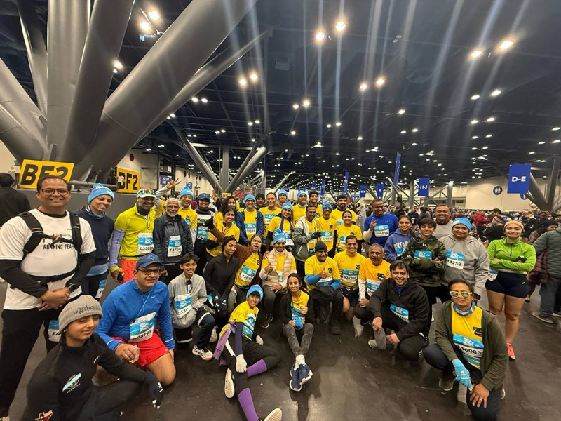 The organization also operated a breakfast booth near the George R. Brown Convention Center, providing tea and food for runners and volunteers. Sewa said volunteers reported early in the morning to support race operations.