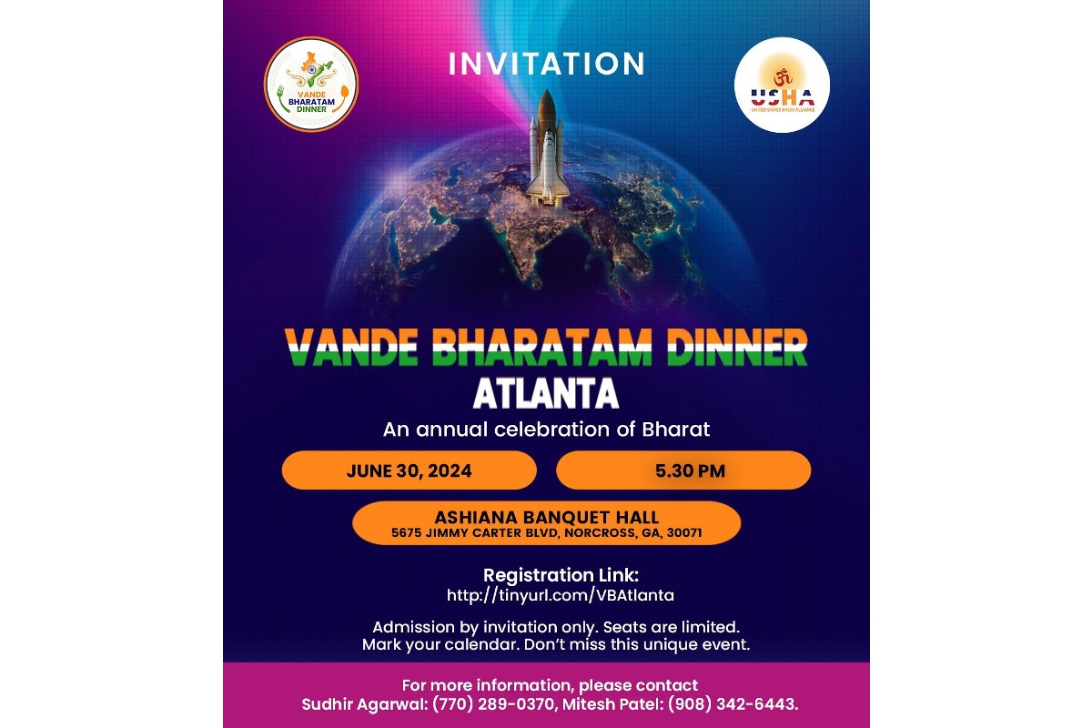 The United States Hindu Alliance (USHA) is hosting a series of dinner events called "Vande Bharatam Dinner" across various American cities, kicking off in Atlanta, Georgia. The first event will be held on June.30, at the Ashiana Banquet Hall in Global Mall, with many local dignitaries expected to attend.