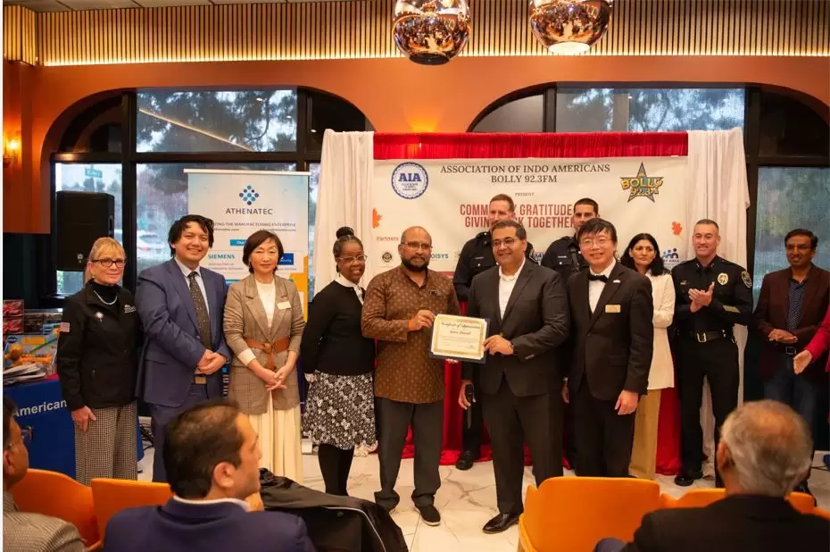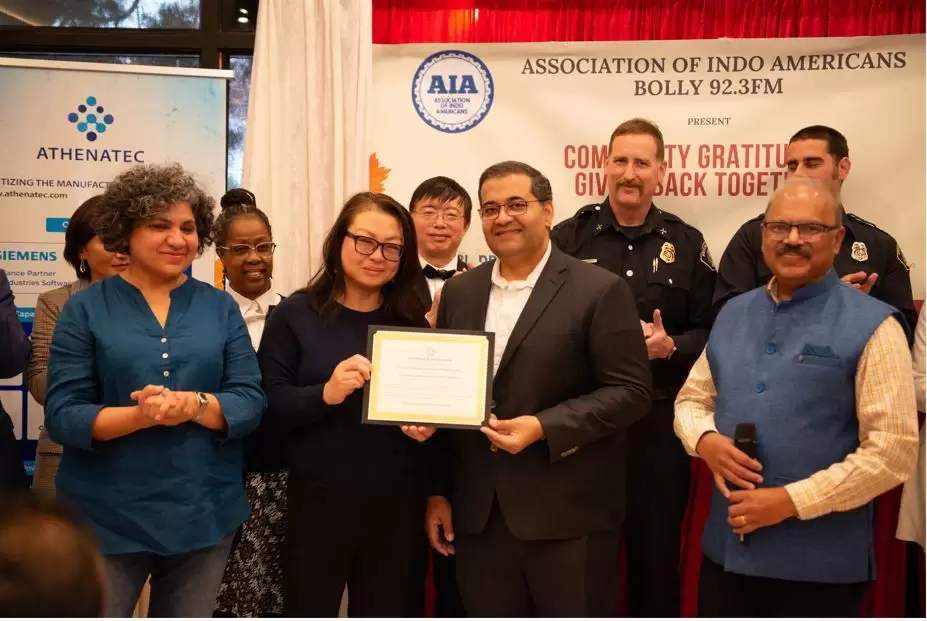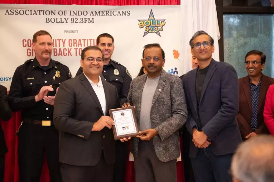 During the program, the Association of Indo Americans formally recognized first responders, community leaders, and service organizations for their continued contributions to regional safety, health, and quality of life.