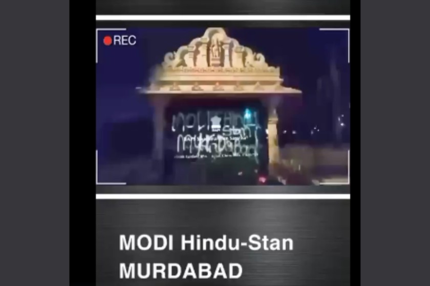The walls of the Mandir were spray-painted with the condemnable political graffiti.