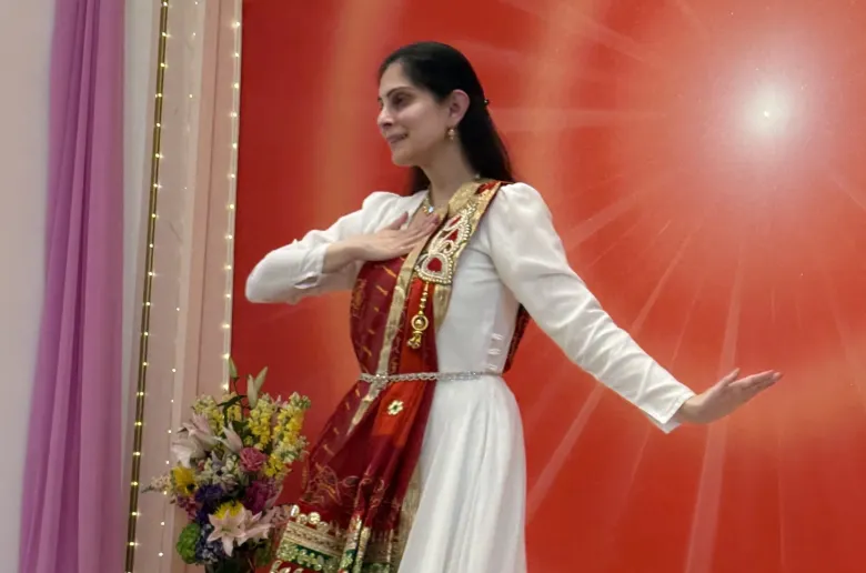 Sister Gayatri Naraine led a brief meditation / Kripa Ranjan Prasad, courtesy of Parveen Chopra/ALotusInTheMud.com