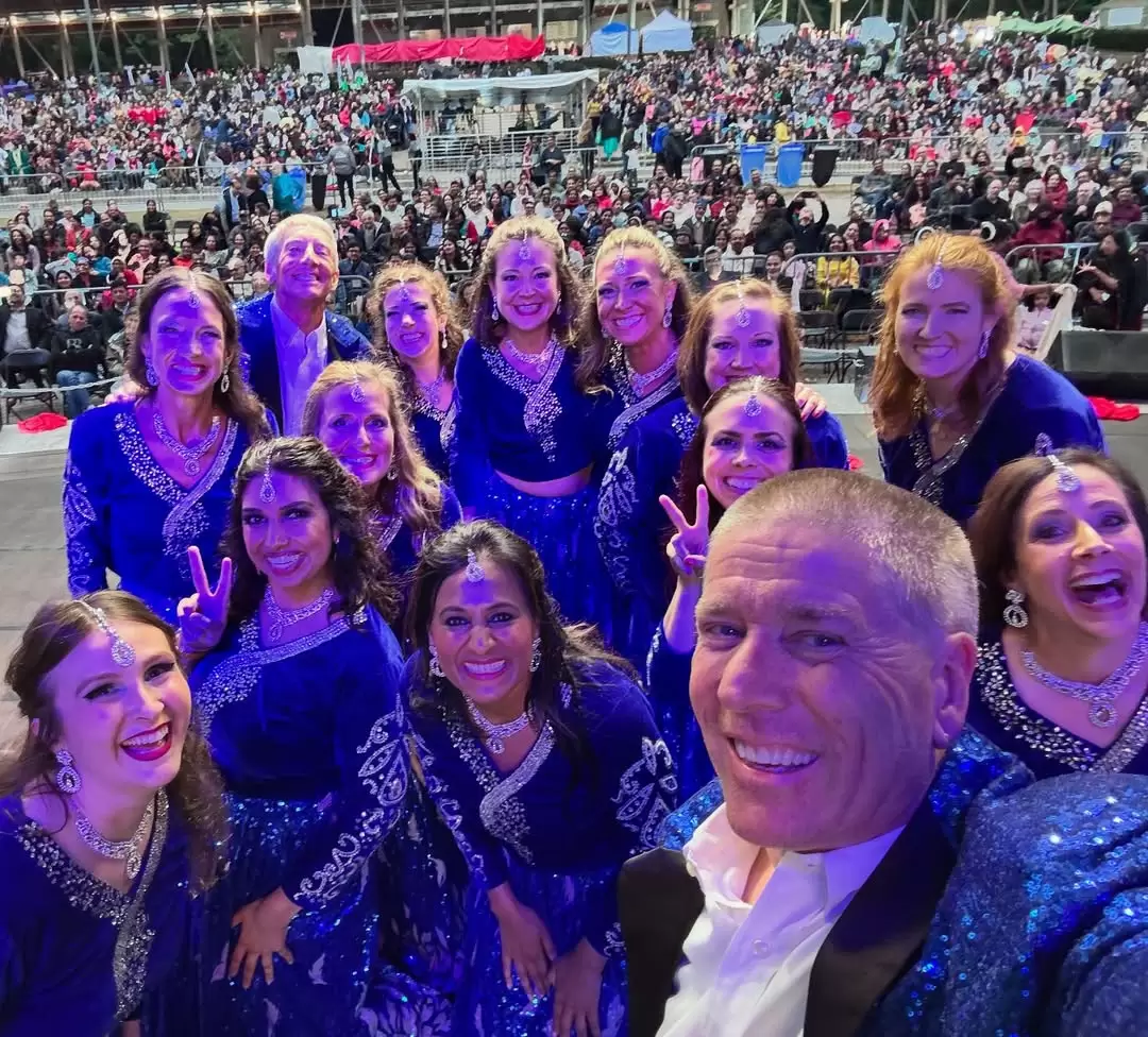 The Celebrity Segment, introduced a few years ago, has grown into a crowd favorite. Local leaders rehearse for weeks, donning colorful costumes sponsored by community businesses, and showcasing the joy of shared cultural connection through music and dance. This year, it featured the two mayors, along with other council members and performers from Taal Harmony Dance Group.