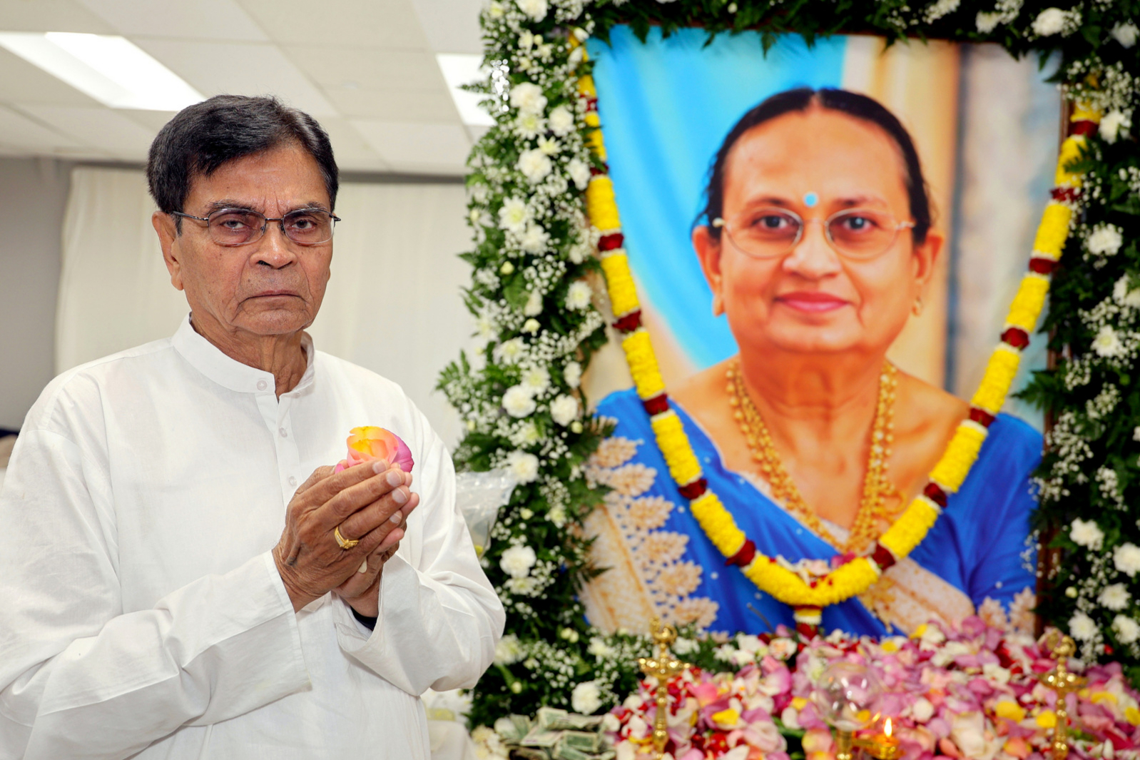 The late Sharda Haribhai Patel, wife of the president of Bhartiya Senior Citizens of Chicago, was honored during a solemn gathering at the Rana Reagan Banquet Hall in Carol Stream, Illinois.