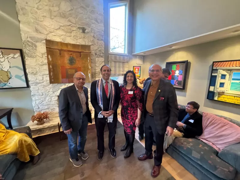 The event was hosted by Ramesh Viswanath Kapur along with Vikram Rajadhyashka, Nar Koppula, Shirish Nimgaonkar, Dr. Anahita Dua, Dr. Suhas Desai, Dr. Lakshmi Thalanki, Prabhu Rao, Dr. Megha Joshi, and Priya Samant. Prominent business owners, professionals, and civic leaders from Massachusetts, New Jersey, and Ohio attended, reflecting a broad coalition backing Krishnamoorthi’s campaign.