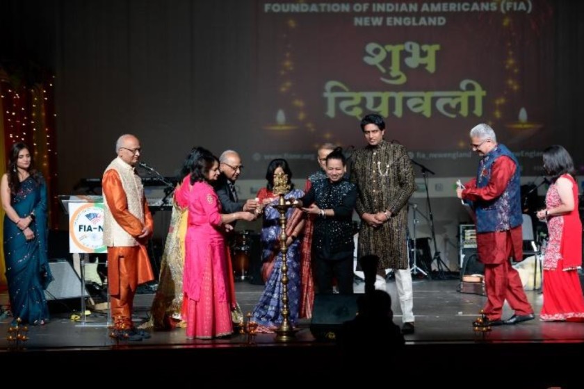 The Foundation of Indian Americans - New England (FIA-NE) hosted a grand Diwali celebration at East Providence High School, drawing over 1,000 attendees. The highlight of the event was a stellar performance by renowned singer Kailash Kher and his band, Kailasa. Kher's soulful music echoed through the venue, enhancing the festive atmosphere and captivating the audience.