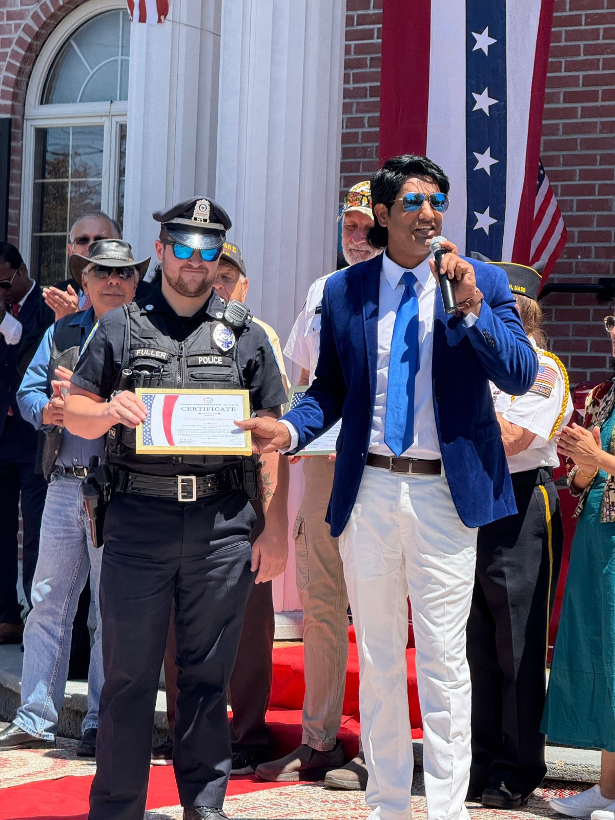 A major highlight was the honoring of U.S. veterans and local police. Among the honorees were Army veteran Elizabeth Barry, Marine Corps veteran Bruce DeGraff, and Northborough Police Chief Brian Griffin and Officer Spencer. Community leaders Meetu Gupta and Irvin Victoria King were also recognized. The honors were presented by India’s Deputy Consul General in Boston, Shruthi Purushottam, alongside FIA president Abhishek Singh