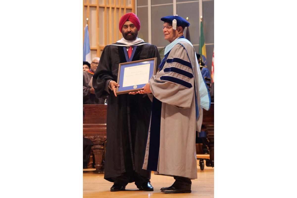 Indian-American Jasdip (Jesse) Singh and Maximus Investment Group President Sajid Tarar, a Pakistan-American, were awarded honorary doctorates for their service to the community by the Washington Adventist University (WAU) on May.5.