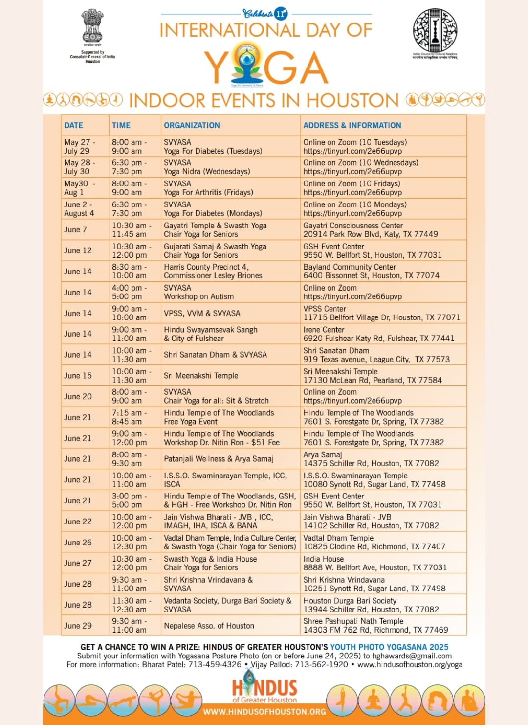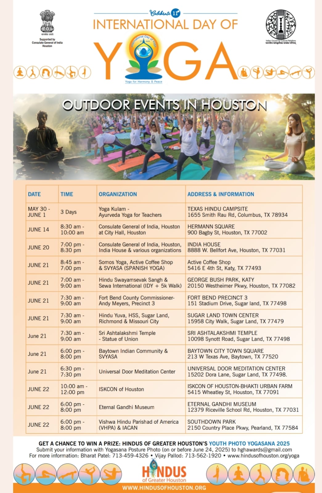 The Consulate General of India in Houston is spearheading the city’s celebration of the 11th International Day of Yoga (IDY) on June 21, 2025, with more than 30 events planned across Greater Houston.