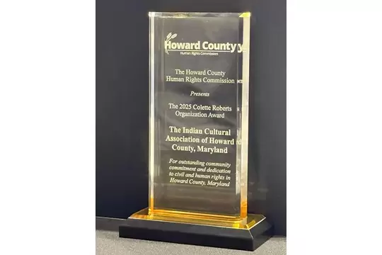 The Indian Cultural Association (ICA) received the 2025 Human Rights Award from the Howard County Human Rights Commission and the Office of Human Rights & Equity.