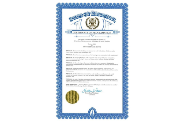 The proclamation further acknowledges the significant contributions of Hindu Americans to Michigan's diversity and prosperity. Throughout October, the state will celebrate Hindu culture, history, and achievements.
