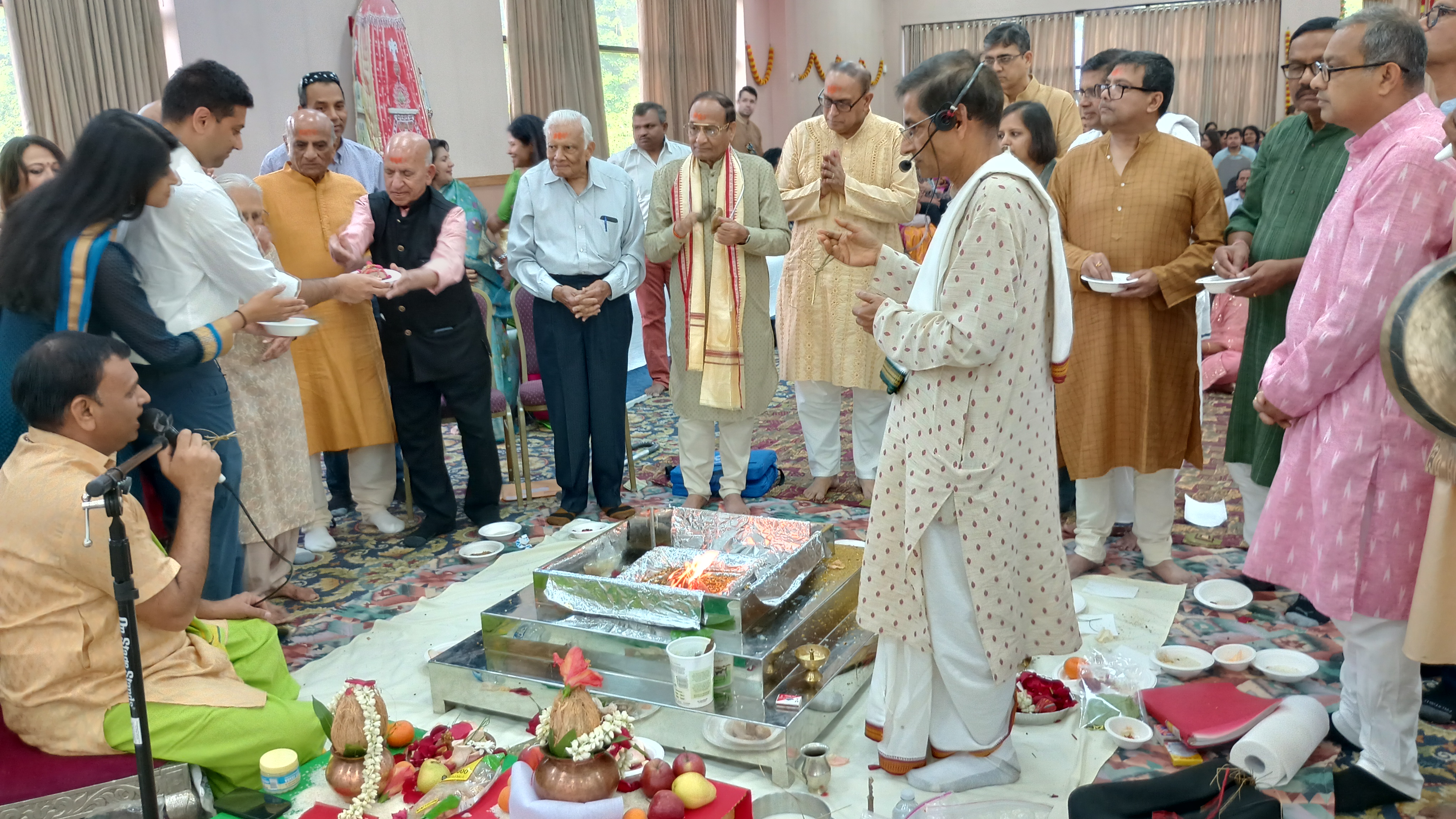 The event commenced with a yagna led by priests Sastri Anilbhai Joshi and Pitambar Sarangi. Temple dignitaries including Sarat Dash, Jayesh Patel, Dhiren Das, Akhil Patel, Kaushik Patel, Prabhas Panigrahi, and Arvind Bhatt actively participated in the rituals. Bhajans by Bijoy Das and kirtans by devotees filled the temple with spiritual fervor.