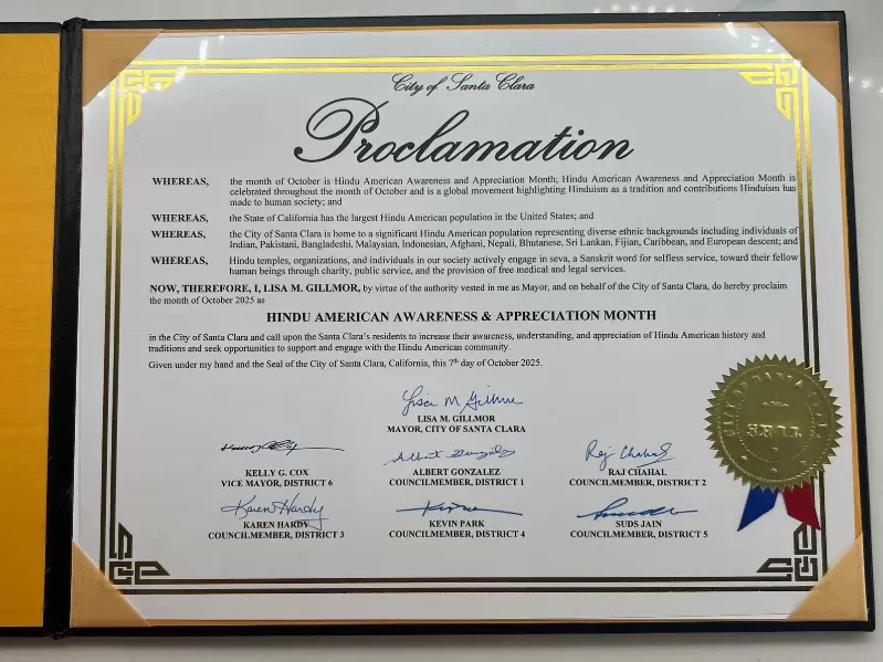 The Mayor of Santa Clara, Lisa M. Gillmor, has issued a proclamation noting that the month of October will be celebrated as Hindu American Awareness and Appreciation Month.