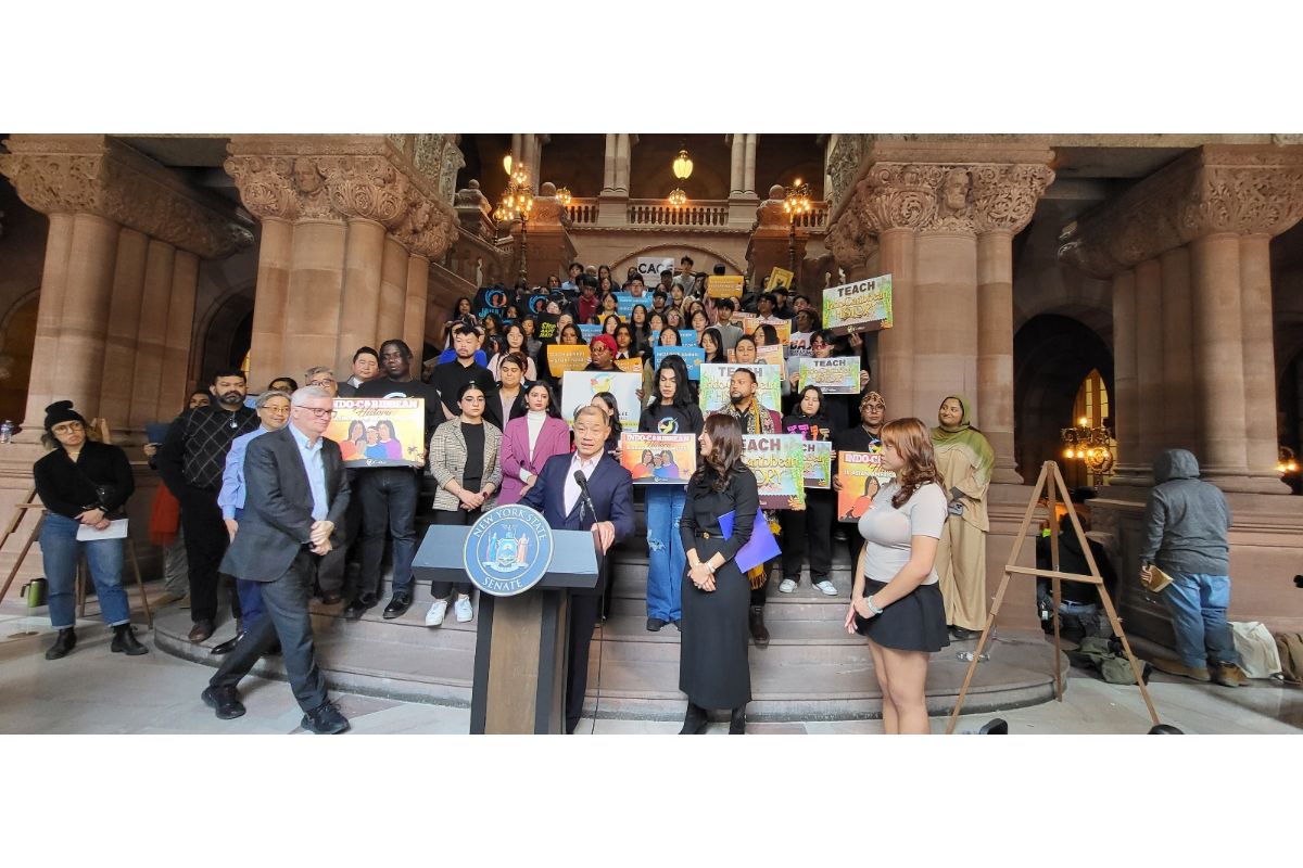 The rally supported Senate Bill 3334 / Assembly Bill A4638, sponsored by Senator John C. Liu (D-16) and Assemblymember Grace Lee (D-65), which calls for developing an AANHPI curriculum and assessing existing implementation efforts.