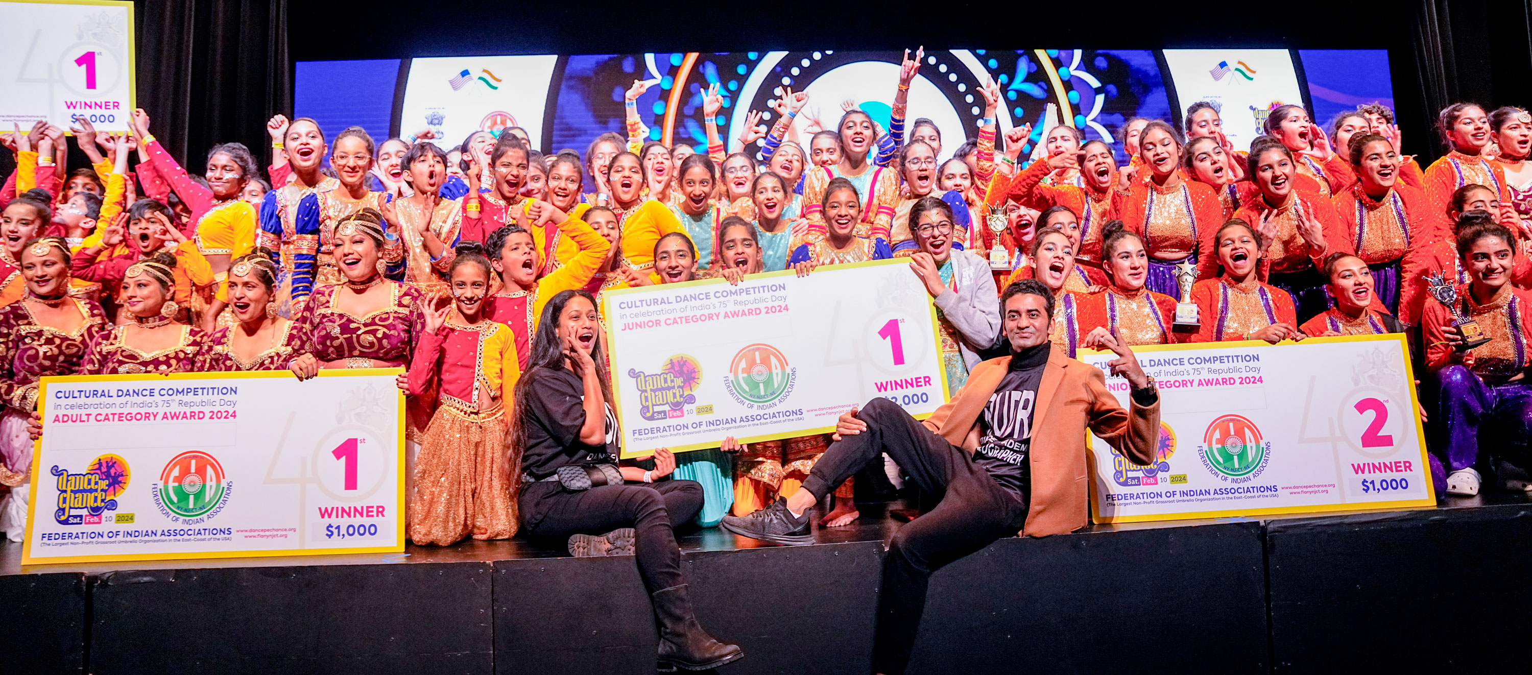 FIA's Dance Pe Chance competition, held on February 10, 2024, at Patriots War Memorial Theater in Trenton, NJ, was a spectacular showcase of talent and artistic expression. Featuring contestants ranging from 6 to 60 years old, the event captivated an audience of approximately 1700 people with vibrant performances inspired by Bollywood themes and Indian culture.