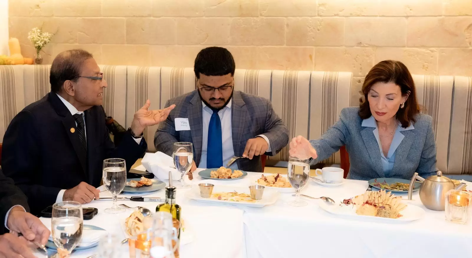 New York State Governor Kathy Hochul joined the Shenoy family for a Diwali celebration on October 16, 2025, at Taverna Kellari, an upscale restaurant in NYC. The dinner time brought together close friends, family members, and members of the Governor’s team to mark the Festival of Lights in a warm and festive setting.