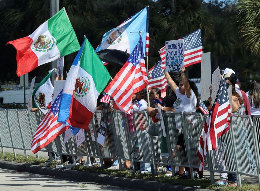 Protesters denounce Trump immigration policies outside his Florida...