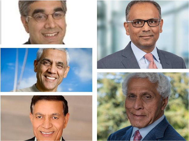 Clockwise - Aneel Bhusri, Rajiv Jain, Romesh Wadhwani, Jay Chaudhry and Vinod Khosla / Images - LinkedIn and X