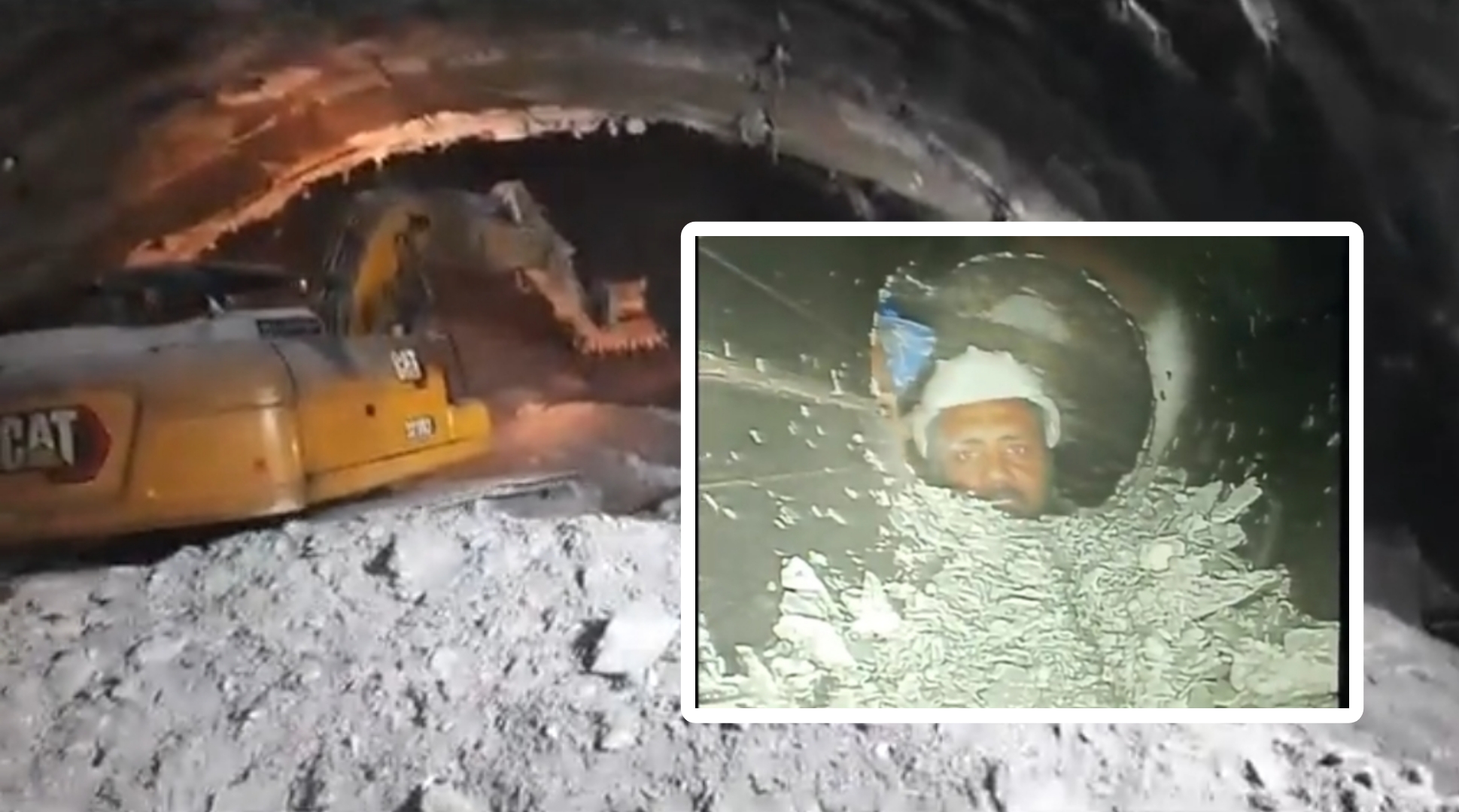 Tunnel collapse leaves 41 workers trapped; first visuals...