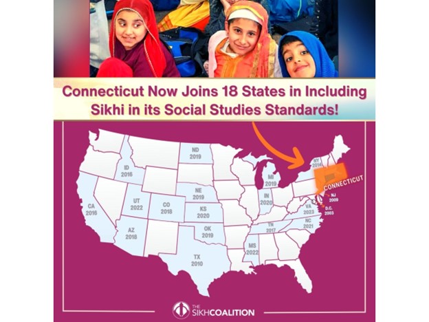 Spearheaded by the Sikh Coalition, a U.S-based Sikh advocacy organisation, Connecticut has become the 18th state in the country to add Sikh Studies to its curriculum. The states that have collaborated with the Coalition to incorporate authentic information about Sikhs into their social studies curriculum for public schools.