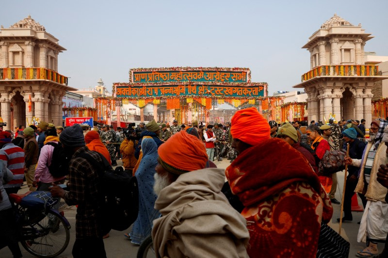 Hindu devotees wait to enter the Hindu god Lord Ram temple after its inauguration in Ayodhya, India, Jan.23, 2024. / Reuters/Adnan Abidi