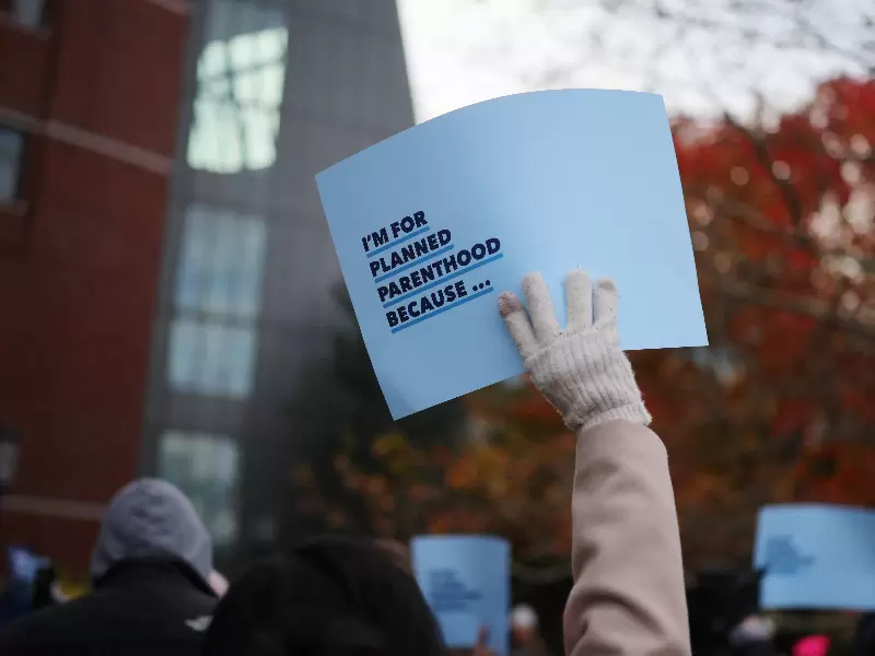 Supporters attend a rally outside the federal courthouse where a federal appeals court will consider whether U.S. President Donald Trump's administration may implement a provision that would deprive Planned Parenthood and its members of Medicaid funding, in Boston, Massachusetts, U.S., November 12, 2025. / REUTERS/Brian Snyder
