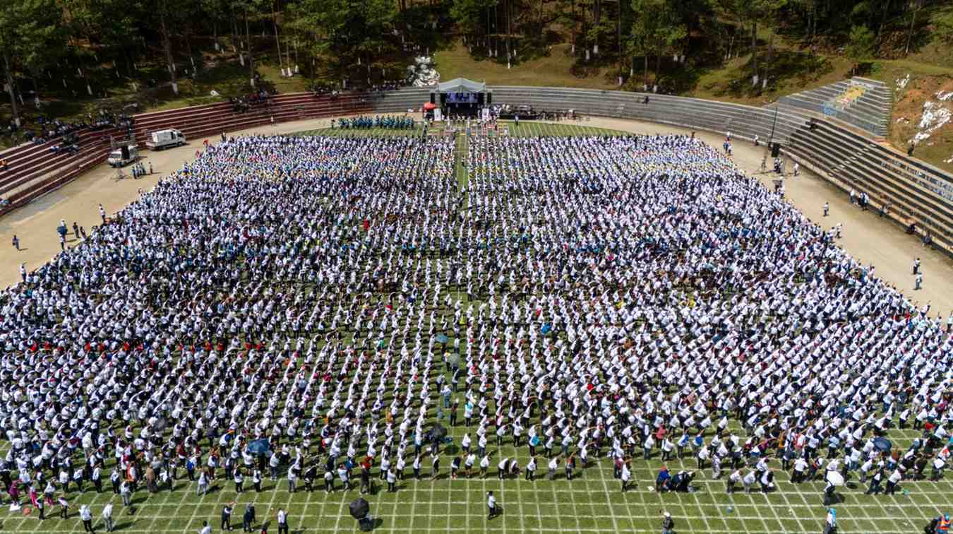 Organized by the Embassy of India in Guatemala, the event held at the Juan Ramón Ponce Guay Stadium in San Pedro Carchá, Cobán brought together students, teachers, military personnel, and community members from across the region for a large-scale group yoga session.