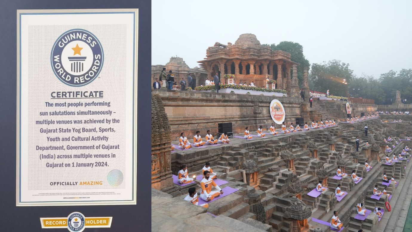 More than 50,000 individuals participated in the event that took place simultaneously at 108 places across the state, including the iconic Modhera Sun Temple on January 1, 2024. The “remarkable feat” won the attention and acknowledgement of Indian Prime Minister Narendra Modi on social media.