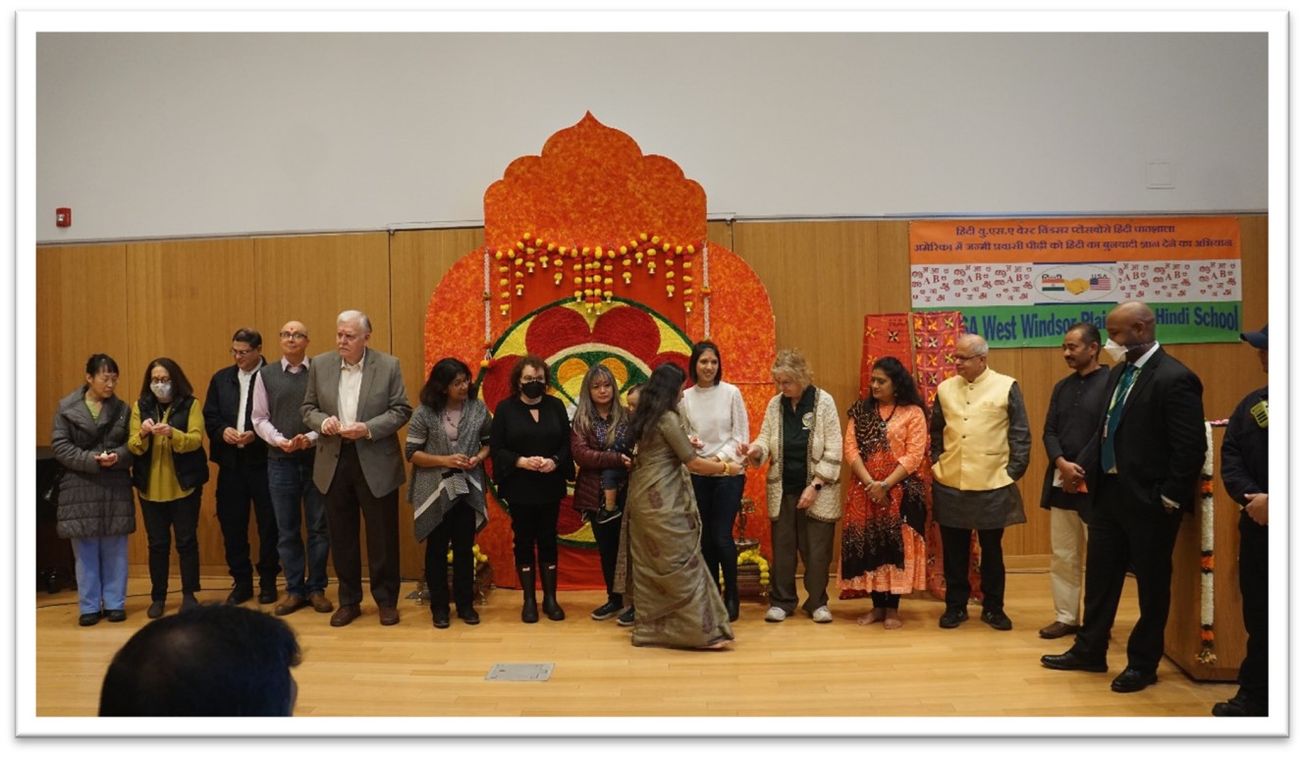 Dignitaries including the Mayor of Plainsboro Peter Cantu, Mayor of West Windsor Hemant Marathe, Venkat from the HSS board, Committee member of Plainsboro Neil Lewis, director of the Plainsboro Library Darren Miguez, West Windsor’s Councilwomen Andrea Mandel and Sonia Gawas, Human Relations Council chair Jyotima Prasad, School Board Members Miss Elizabeth George-Cheniara, Dana Krug, Pooja Bansal, Plainsboro Fire Company Firefighter Surabhi Arora, Rescue Squad president Arun Bantval and vice president Neena Karnad and members fromHindiUSA's expo spotlights Hindu culture other departments graced the event.