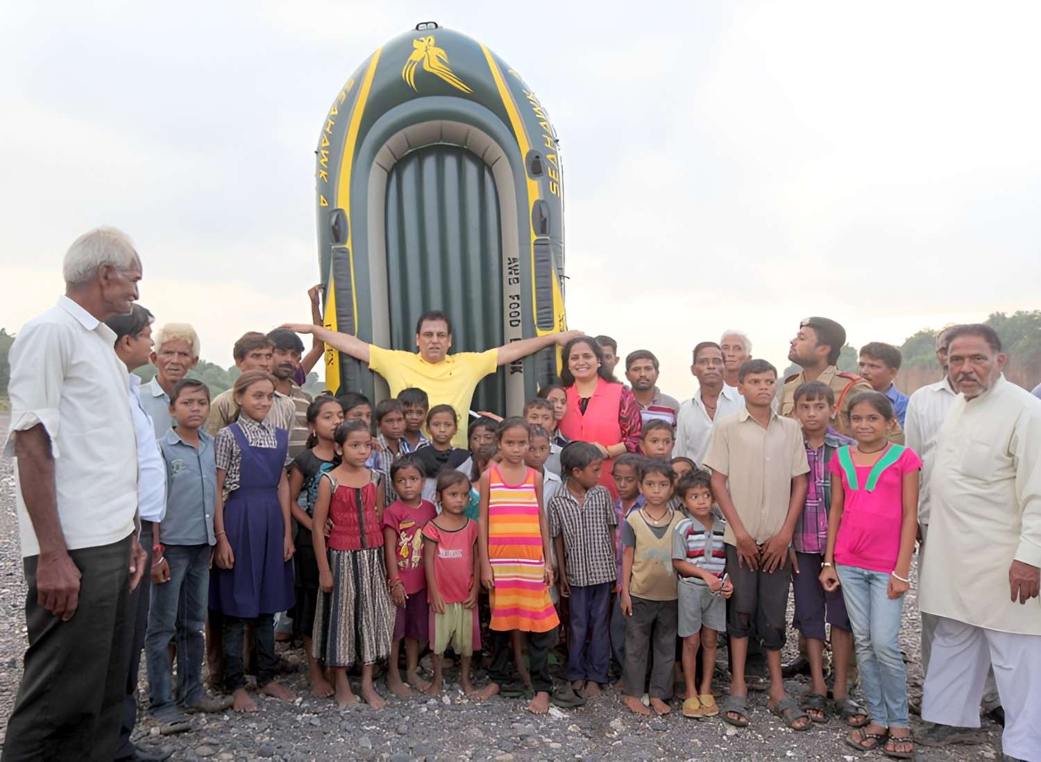 Along with his spouse Ratna, Bhalla visited a Gujarati hamlet in 2014 to provide a boat as a gift for schoolchildren who had to swim a choppy river every day to get to school, endangering their lives.