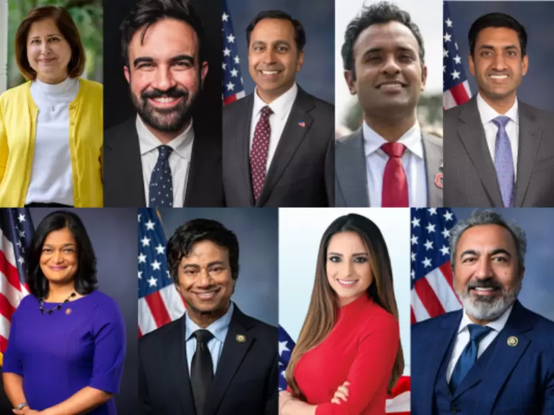 (Top L-R) Ghazala Hashmi, Zohran Mamdani, Raja Krishnamoorthi, Vivek Ramaswamy, Ro Khanna (Bottom L-R) Pramila Jayapal, Shri Thanedar, Jenifer Rajkumar, Ami Bera / File Photo