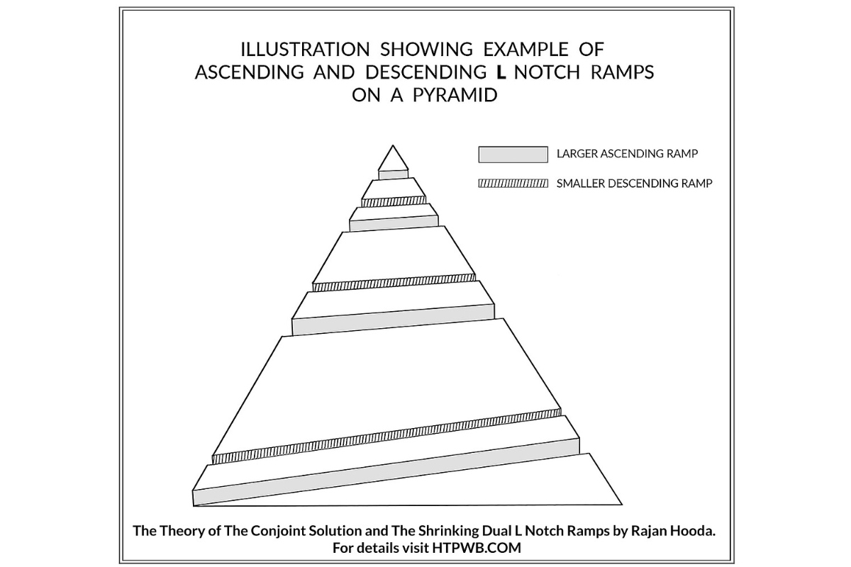 Hooda's findings, published in his latest research paper titled "Theory of The Conjoint Solution and The Shrinking Dual L Notch Ramps," detail an innovative construction methodology for the pyramids. / Rajan Hooda website